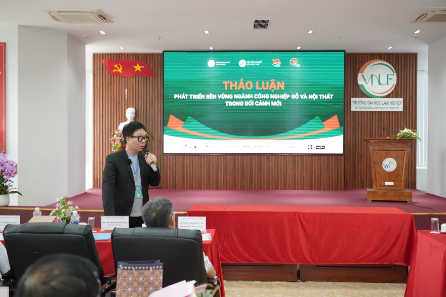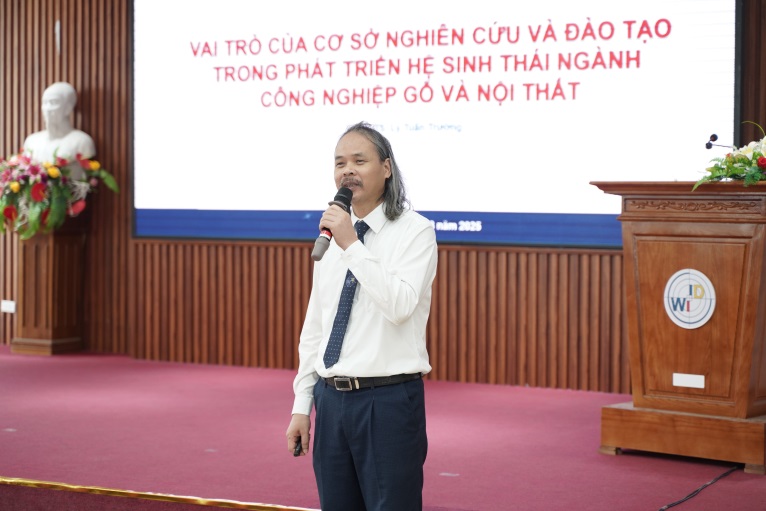 1. "Vai trò của cơ sở nghiên cứu, đào tạo trong phát triển hệ sinh thái ngành Công nghiệp gỗ và Nội thất" của PGS.TS.Lý Tuấn Trường, Viện trưởng Viện CNG&NT.