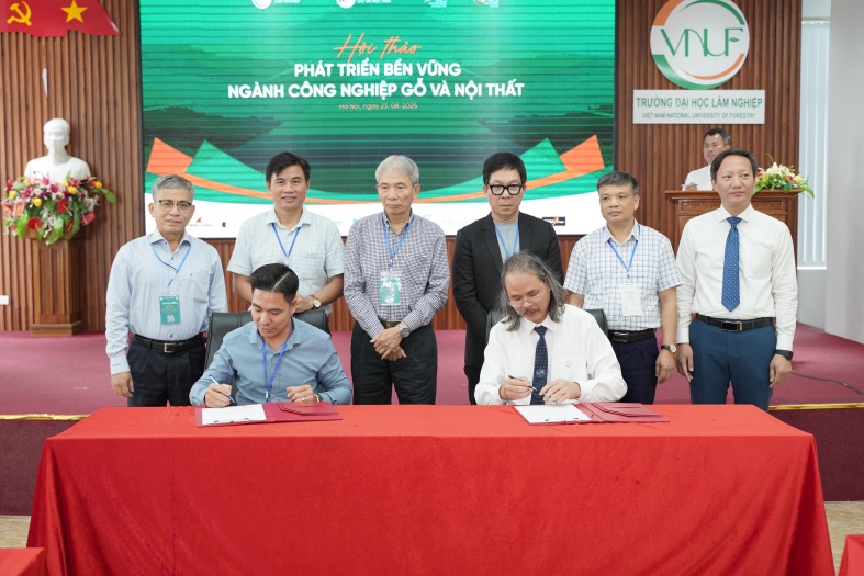 Cũng trong chương trình Hội thảo, để tạo cơ sở pháp lý khi triển khai các nội dung hợp tác, Viện Công nghiệp gỗ và Nội thất đã tiến hành ký kết biên bản ghi nhớ về việc hợp tác đào tạo nguồn nhân lực, xây dựng chương trình đào tạo phù hợp yêu cầu thực tiễn với 05 Doanh nghiệp gồm: Công ty CP TM&SX Nội thất HD; Công ty CP Chu Gia Trác Mộc; Công ty Sofia Interior; Công ty CP Quốc tế Sinai; Công ty TNHH XNK Lê Hoàng.